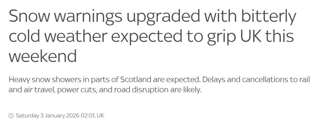 ● 英国遭遇严寒天气,多地迎来2026新年初雪