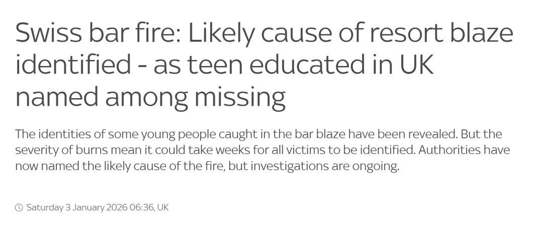 瑞士滑雪胜地酒吧发生火灾,曾在英上学的15岁女孩失踪