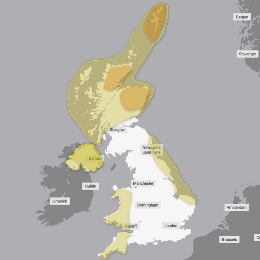 苏格兰北部有橙色降雪警报,将持续到当地时间1月3日中午,覆盖的地区包括Angus, Perth and Kinross, Aberdeen, Aberdeenshire, Moray以及the Highlands等。
