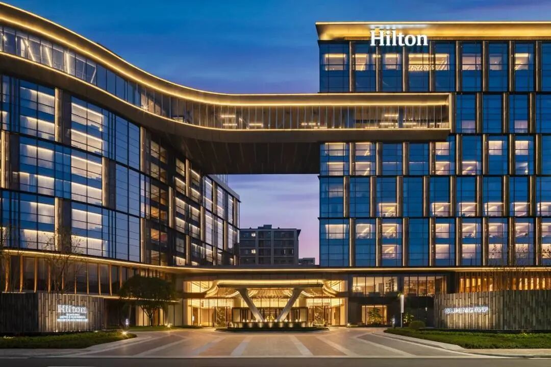 绍兴苏宁希尔顿酒店位于浙江省绍兴市越城区横湖路100号。其设计融合东方美学与绍兴地域文化。酒店拥有347间现代客房及长住套房,配备超过800平方米无柱宴会厅,并设有8间灵活多功能厅。