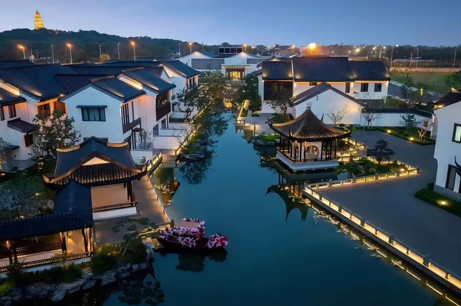 苏州虎丘璞燊酒店位于江苏省苏州市姑苏区虎丘街道路北街168号。酒店已开放的南区拥有141间各具特色的客房及可容纳500余人的大型宴会厅。设计上,酒店借景虎丘塔,引水山塘河,通过亭、廊、水、石、植物的层次布局,将现代旅居体验嵌入立体的江南园林画卷中。