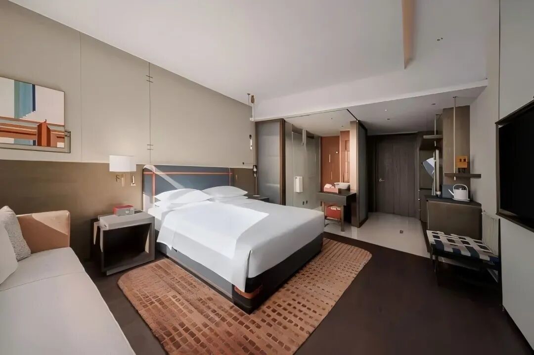 珠海香洲英迪格酒店位于广东省珠海市香洲区健体巷1号。酒店拥有198间客房,延续“时空轨迹”设计主题,将跑道与铁轨的抽象线条融入背景墙面,寓意体育激情与奋进精神。餐厅方面拥有主理现代粤式美食的乐飨餐厅和以广府文化为韵的中餐厅。
