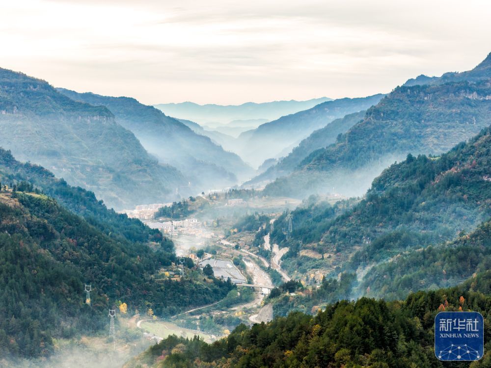 ↑这是2025年11月22日拍摄的重庆市石柱县中益乡景色(无人机照片)。新华社记者 唐奕 摄