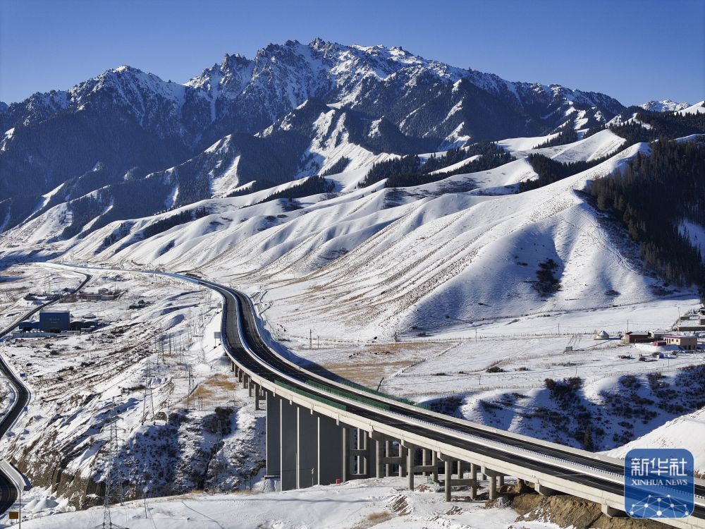 ↑2025年12月23日拍摄的新疆乌尉高速公路(无人机照片)。12月26日,世界最长高速公路隧道——天山胜利隧道及其所在的G0711新疆乌鲁木齐至尉犁高速公路(简称“乌尉高速”)实现全线通车。天山胜利隧道全长22.13公里,是目前世界最长高速公路隧道。新华社记者 王菲 摄