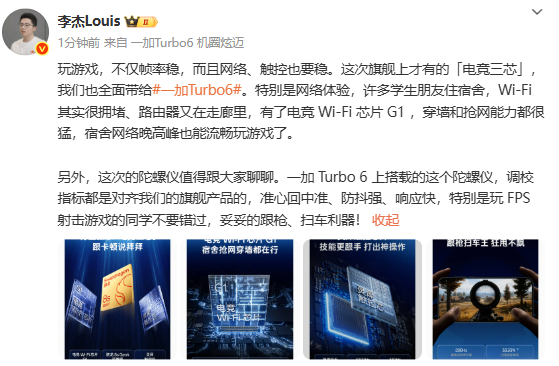 【CNMO科技消息】1月4日,一加中国区总裁李杰官宣一加Turbo 6将搭载旗舰同款电竞三芯。此外,该机陀螺仪的调校指标也对齐一加旗下的旗舰产品。新机将于1月8日19:00正式发布。