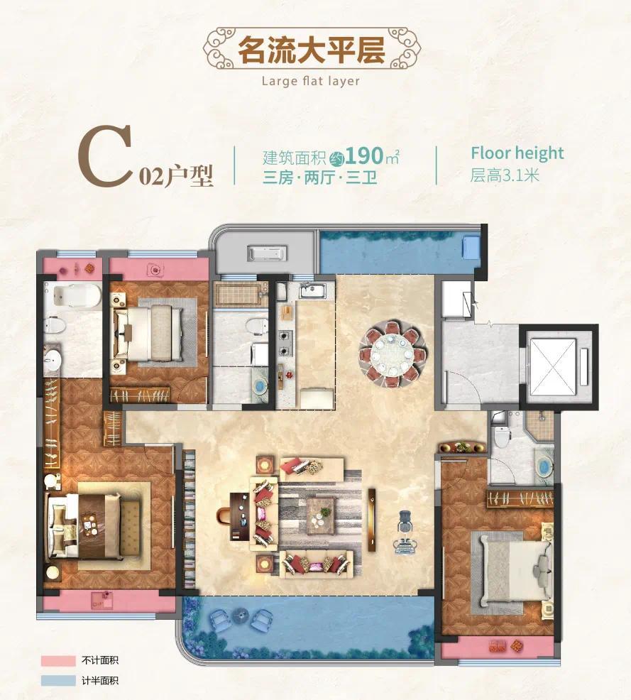 一层恢弘会客,阔绰横厅连接景观庭院,生活与社交皆从容舒展;二层静谧栖居,多套房设计,家人各安其境互不打扰;三层总裁纯享,以非凡面宽尺度,成就匹配塔尖人物的终极场域;匠心打造的地下双幕空间,凭借优越挑高,可规划为私宴厅、影音室、健身房等,给生活预留无限可能。