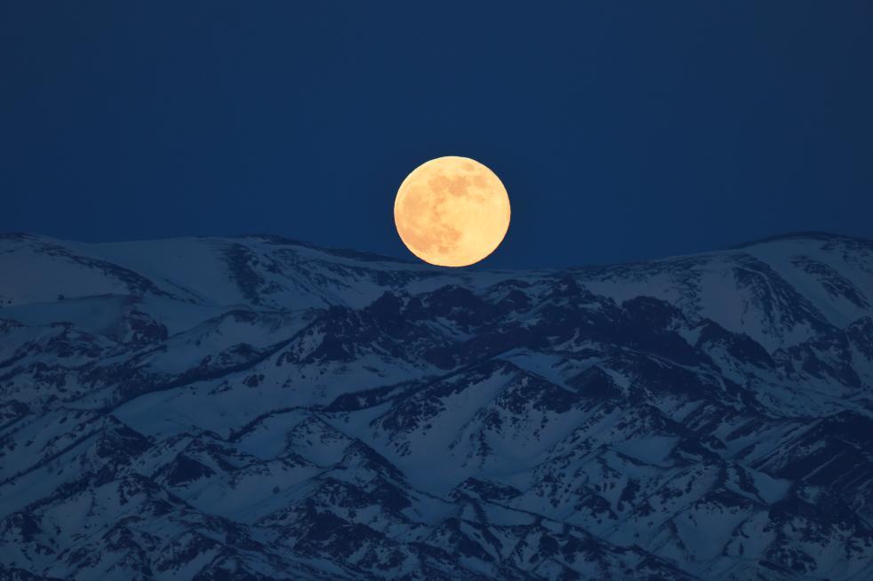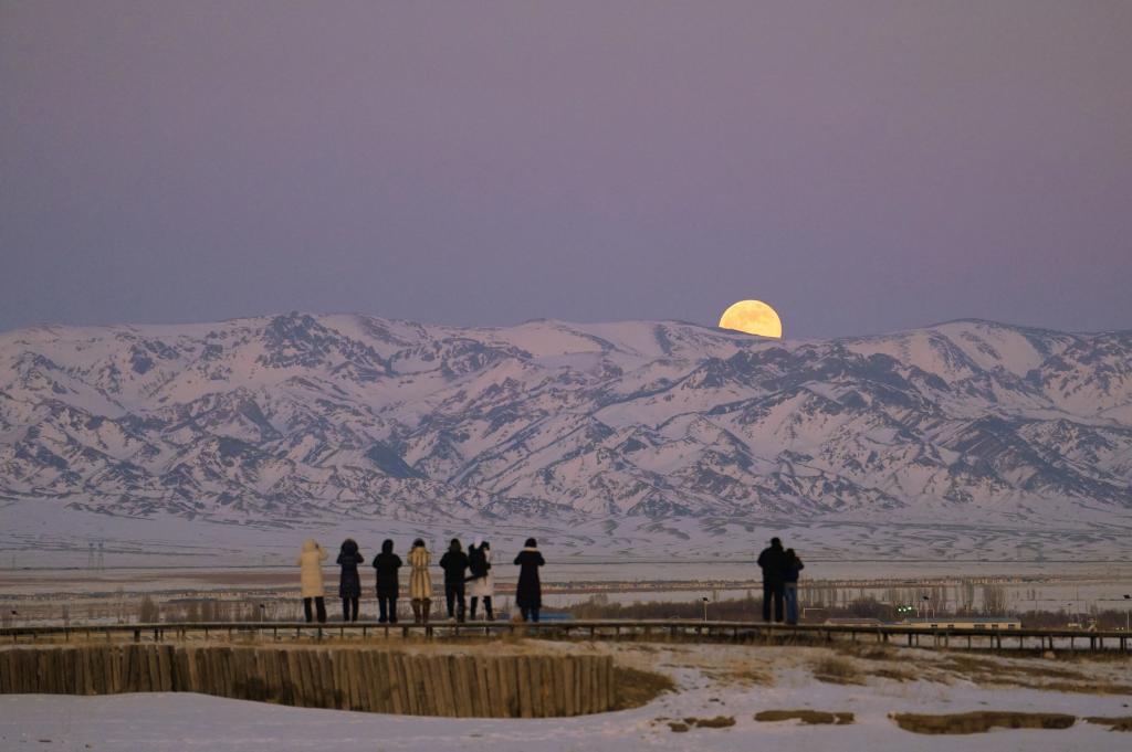 1月3日晚,在新疆哈密巴里坤高家湖拍摄的超级月亮。新华社发(王紫承 摄)