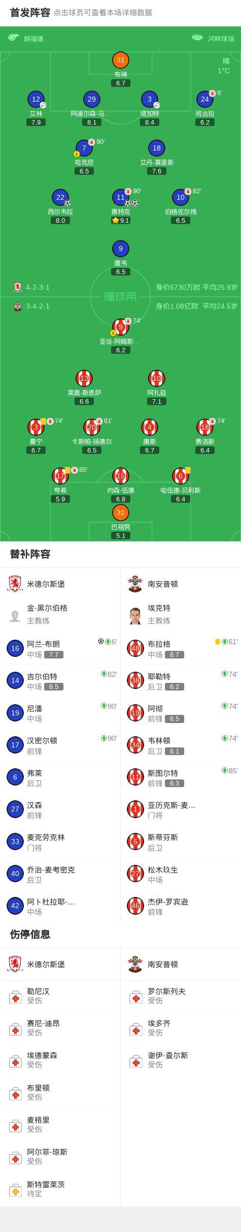 第61分钟,米德尔斯堡球员艾林助攻西尔韦拉打入一球。