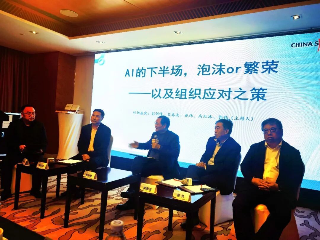 吴春波:我历来都是保守主义。关于AI,因为我没有全球视野,不做技术,又是文科生,也没有做研究,所以到底上半场还是下半场、繁荣还是泡沫,说不清楚,不敢乱做评论。但我看到一个现象:AI在论坛、各种会议非常热,但在企业好像形成两个极端:一冷一热。这是我观察的现象,这是第一点。