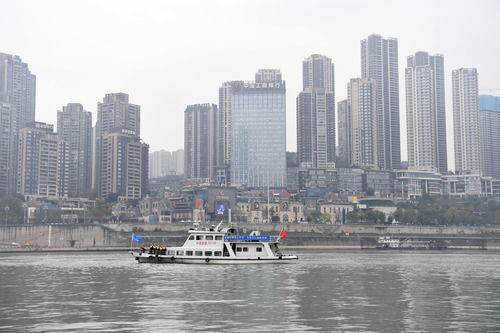 执法船在长江流域重庆段开展联合巡江行动。(2020年12月31日摄)。新华社记者唐奕摄