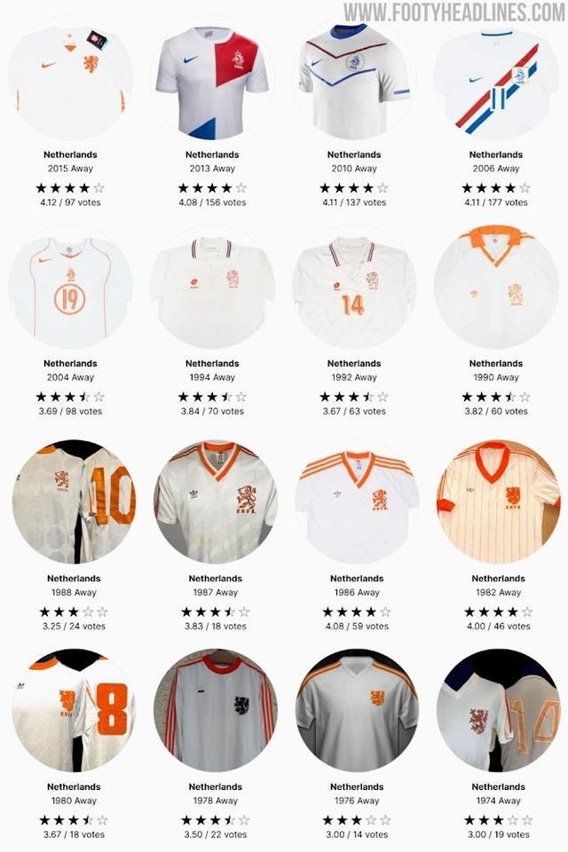 与近年荷兰队偏深色、强烈视觉风格的客场球衣相比,这款以白色为主的设计可谓变化巨大。事实上,荷兰国家队上一次使用白色客场球衣还要追溯到2015年。
