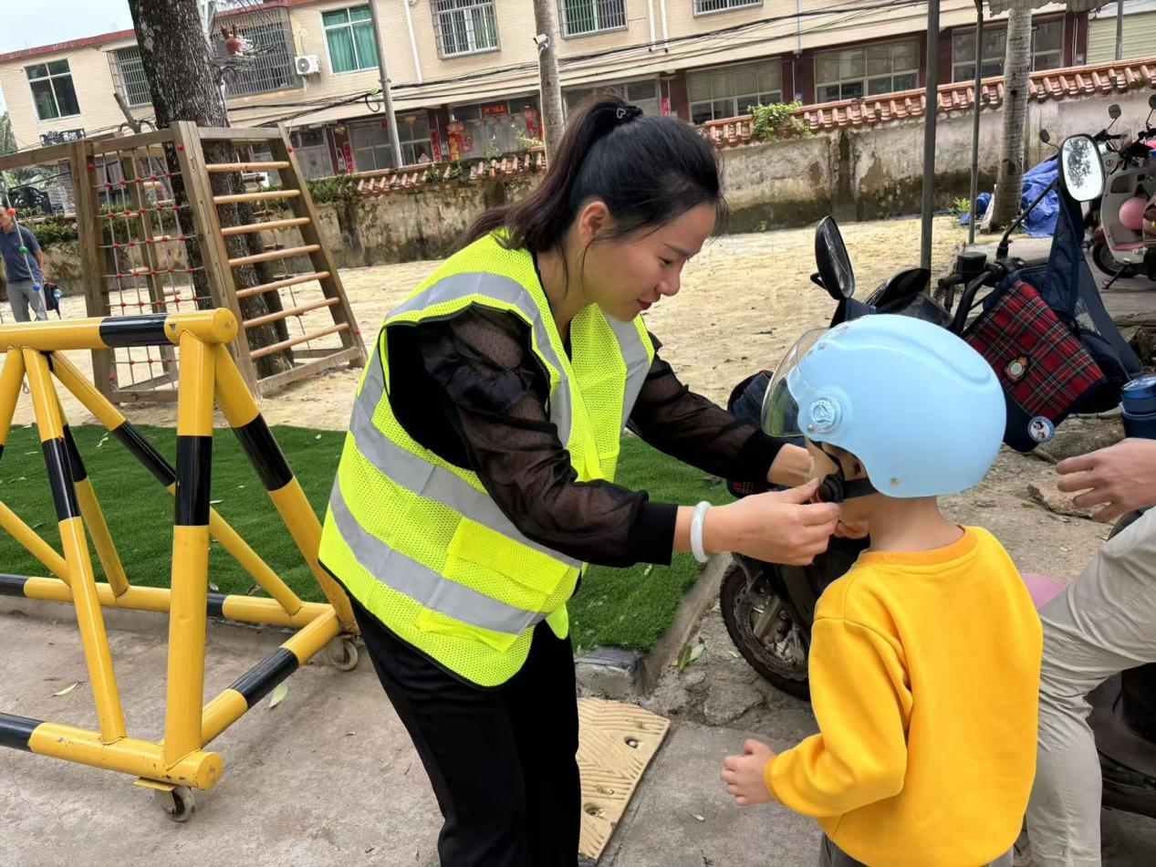 南桥镇中心幼儿园志愿者帮幼儿戴头盔