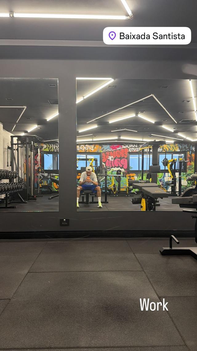 内马尔在社交媒体上分享了在健身房的照片并配文道:“工作。”地点则是在桑托斯都会区。