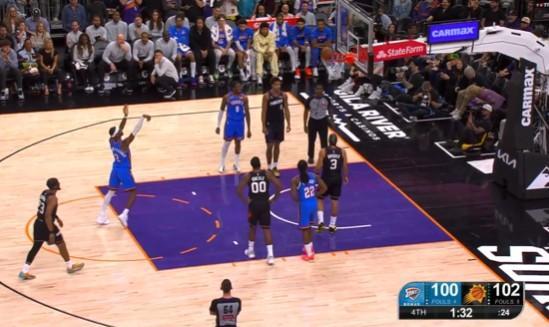 本场比赛两队战至最后时刻。在比赛还剩1分32秒雷霆100-102落后2分时,亚历山大执行关键罚球。在第一次罚球中,站在篮板位的太阳前锋狄龙-布鲁克斯故意跺脚加略带提前进线嫌疑的干扰导致亚历山大罚球偏出。亚历山大也立即向裁判投诉,但没有得到响应。