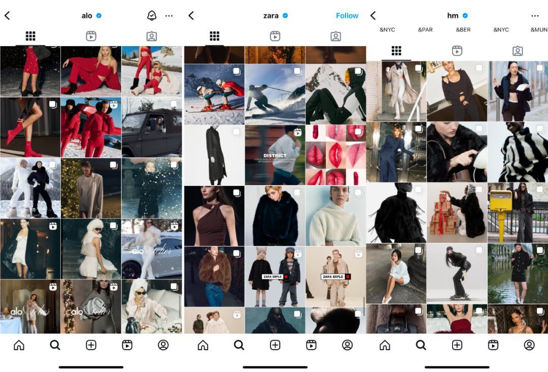 Alo/Zara/H&M Instgram对比