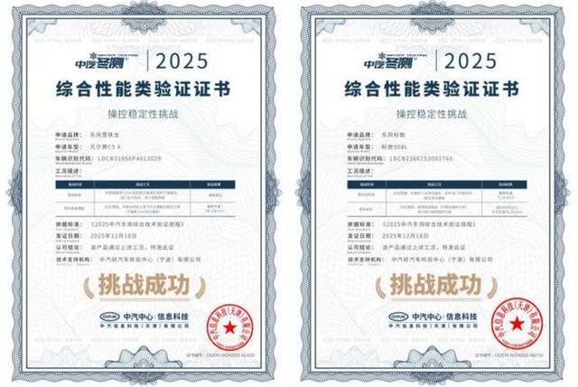 在产品性能验证方面,旗下车型表现突出。在中汽中心组织的夏季高温测试中,东风雪铁龙凡尔赛 C5 X 在太阳辐射隔绝、车内空气质量控制以及湿滑地面高速爆胎等工况测试中表现优异,获得 “健康与操控双安全” 认证;在后续的极寒驾控安全验证中,东风雪铁龙凡尔赛 C5 X 与东风标致 508L 凭借稳定的操控性能,顺利通过相关测试,斩获 “操控稳定性挑战” 认证证书,印证了其在极端环境下的产品可靠性,也强化了品牌 “安全可靠”“法式驾控” 的核心标签。