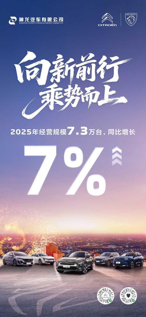 近日,神龙汽车公布 2025 年经营数据,全年经营规模达 7.3 万台,同比增长 7%。在汽车行业竞争日趋激烈、转型需求迫切的市场环境下,这家合资车企通过营销优化、品质把控、多方协同等一系列举措,实现了稳健发展,同时明确了 2026 年的转型方向与未来三年的复兴规划。