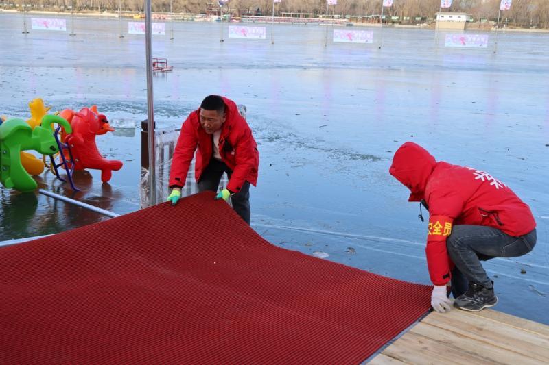据玉渊潭公园相关负责人介绍,目前,工作人员每天对冰层厚度进行测量,部分区域冰层厚度已达到15厘米以上的开放标准。玉渊潭公园正在推进最后的美化布置、票务测试和员工培训工作。