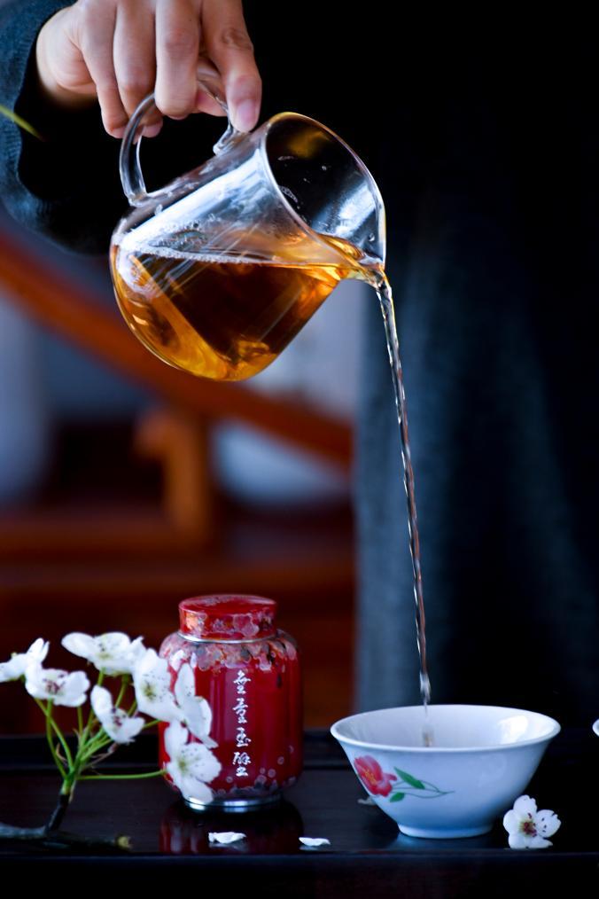 ↑2025年3月26日,南涧彝族自治县公郎镇北纬25度茶庄园的茶艺师在冲泡白茶。