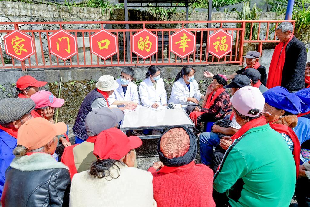 ↑2025年10月28日,在南涧彝族自治县公郎镇自强村麦地平幸福小院,医生为老人诊疗。