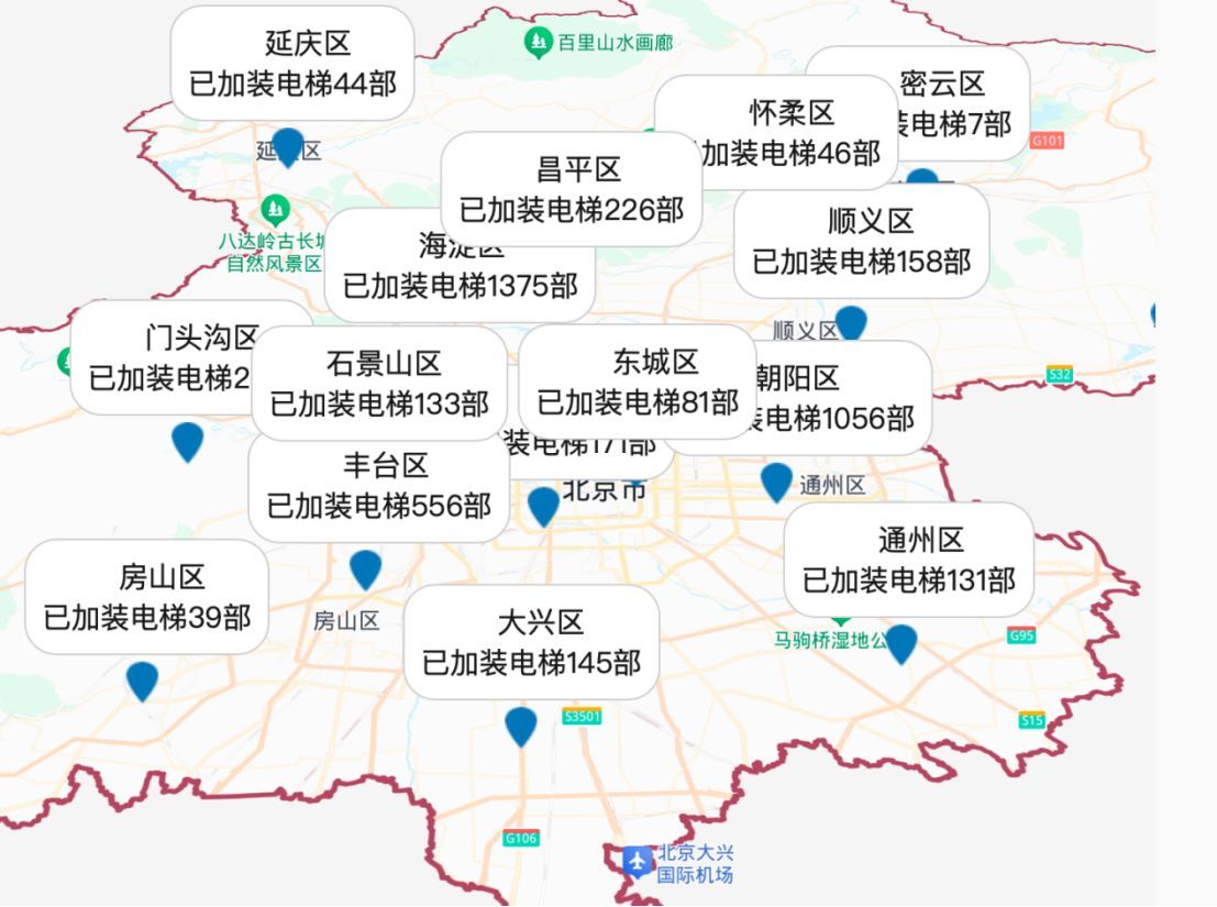 据每经记者梳理,截至目前,北京市海淀区加装电梯数量最多,为1375部;朝阳区次之,为1056部;丰台区、大兴区、石景山区等区的加装数量也均在三位数。