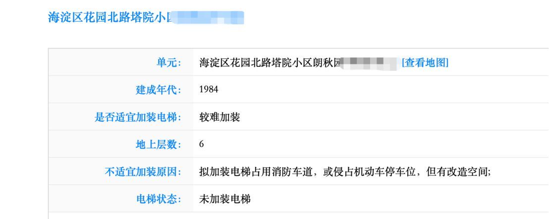每经记者注意到,在加装电梯总数最多的海淀区,如花园北路塔院小区朗秋园的多个楼栋,也均因上述理由而未加装成功。