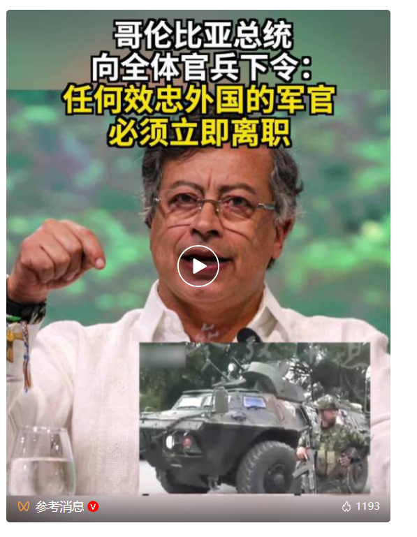 同日,佩特罗在社交平台上表示,他已向哥伦比亚全体官兵下达命令,任何效忠外国而非哥伦比亚的指挥官必须立即离职。