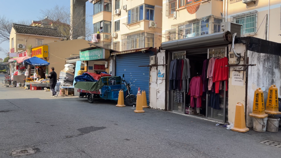 西渡街道综合行政执法队副队长蔡卫解释,这是历史遗留问题了,这些店主自称是向开发商等花钱买下的,但又拿不出产权证。由于一直未确认其性质,执法部门目前仅依据市容管理规定,对店外占道、污水乱倒等行为进行管理,并联合市场监管所、居委会开展巡查固守。