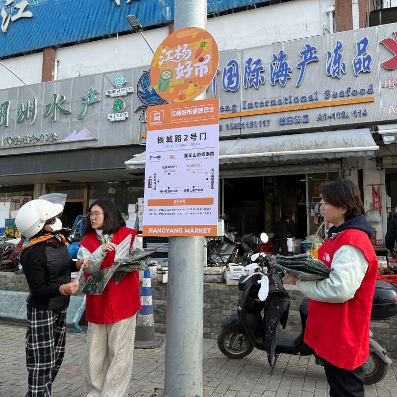 江杨农产、江杨水产、江阳水产、保翔冷库、西浜村、晟杨公司等“江杨好市”党建联席会成员单位经前期的充分协商和紧张筹备后,一条连接周边社区主要出入口与江杨市场的“江杨好市便民巴士”最终敲定。
