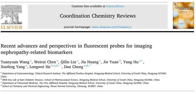 新年初始,南华大学附属南华医院程丹研究员在权威期刊Coordination Chemistry Reviews(中科院1区TOP期刊,影响因子23.5)发表以“Recent Advances and Perspectives in Fluorescent Probes for Imaging Nephropathy-Related Biomarkers”为题的综述论文。