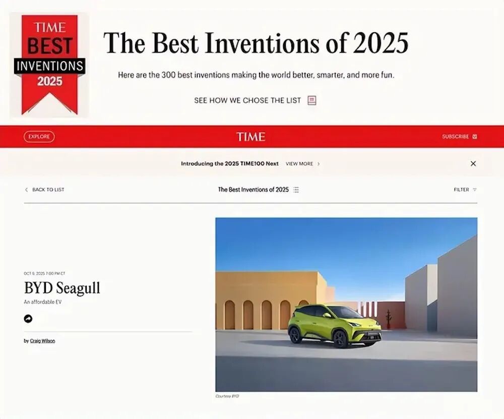 在欧洲,宋PLUS拿下德国2025年11月插混车型销冠,成为中国品牌首个在德国主流细分市场登顶的车型;海鸥入选美国《时代》杂志“年度最佳发明”。