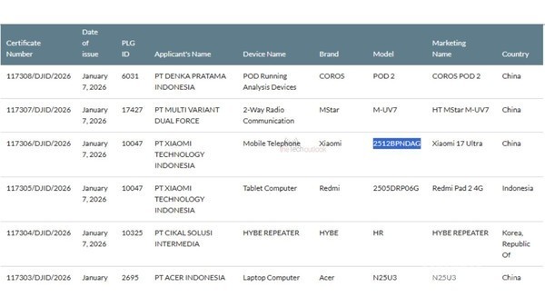 近日,小米旗下影像旗舰手机小米17 Ultra的国际版本有了新的动向。该机型此前已在中国市场发布,提供标准版和徕卡定制版两种选择。如今,其标准版型号出现在了印度尼西亚的SDPPI认证数据库中,这预示着该机的国际发布计划可能已提上日程。