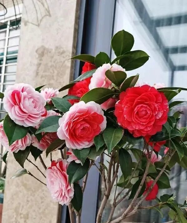 五色赤丹是非常经典的古老茶花品种,一棵树能开多种花色,花朵大、颜色艳丽,在众多茶花品种中,它也算是比较好养护的,对环境的适应能力较强。在前些年,它还是价格不菲的品种,现在已经非常普及,价格也越来越亲民。