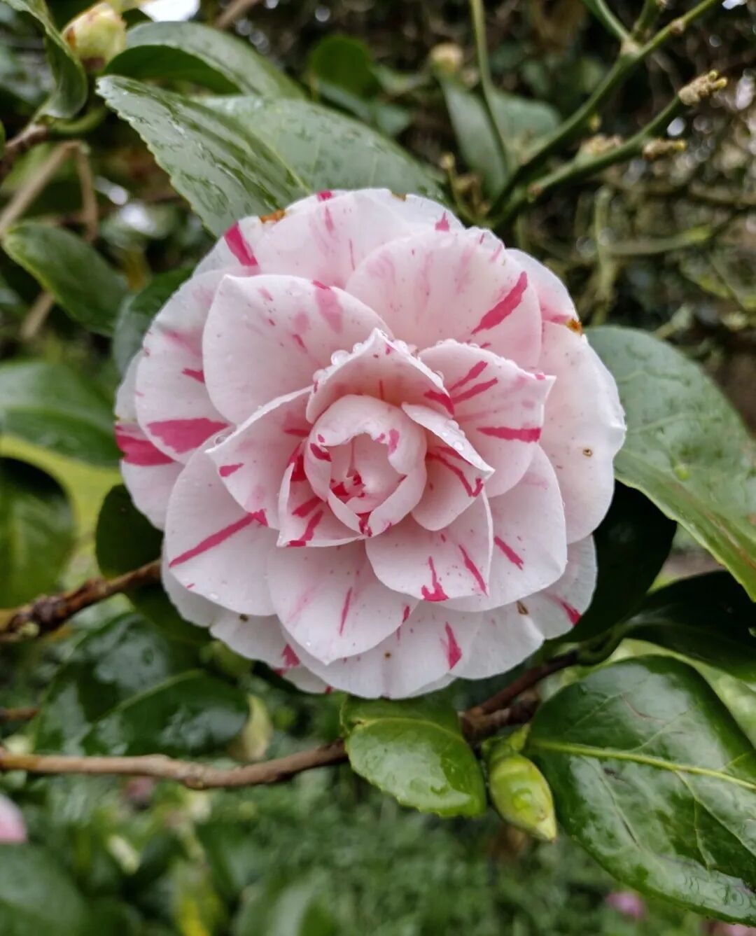 当然,五色赤丹茶花也有缺点:它不能稳定开出5种花色,有时候会只出现单种花色或少数几种花色;相比其他茶花品种,它的长势会比原种赤丹(只开红花的品种)弱一些。