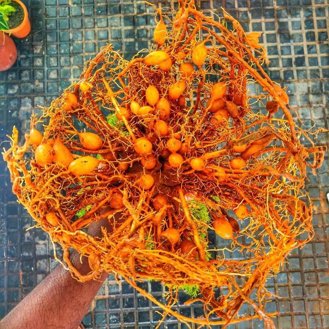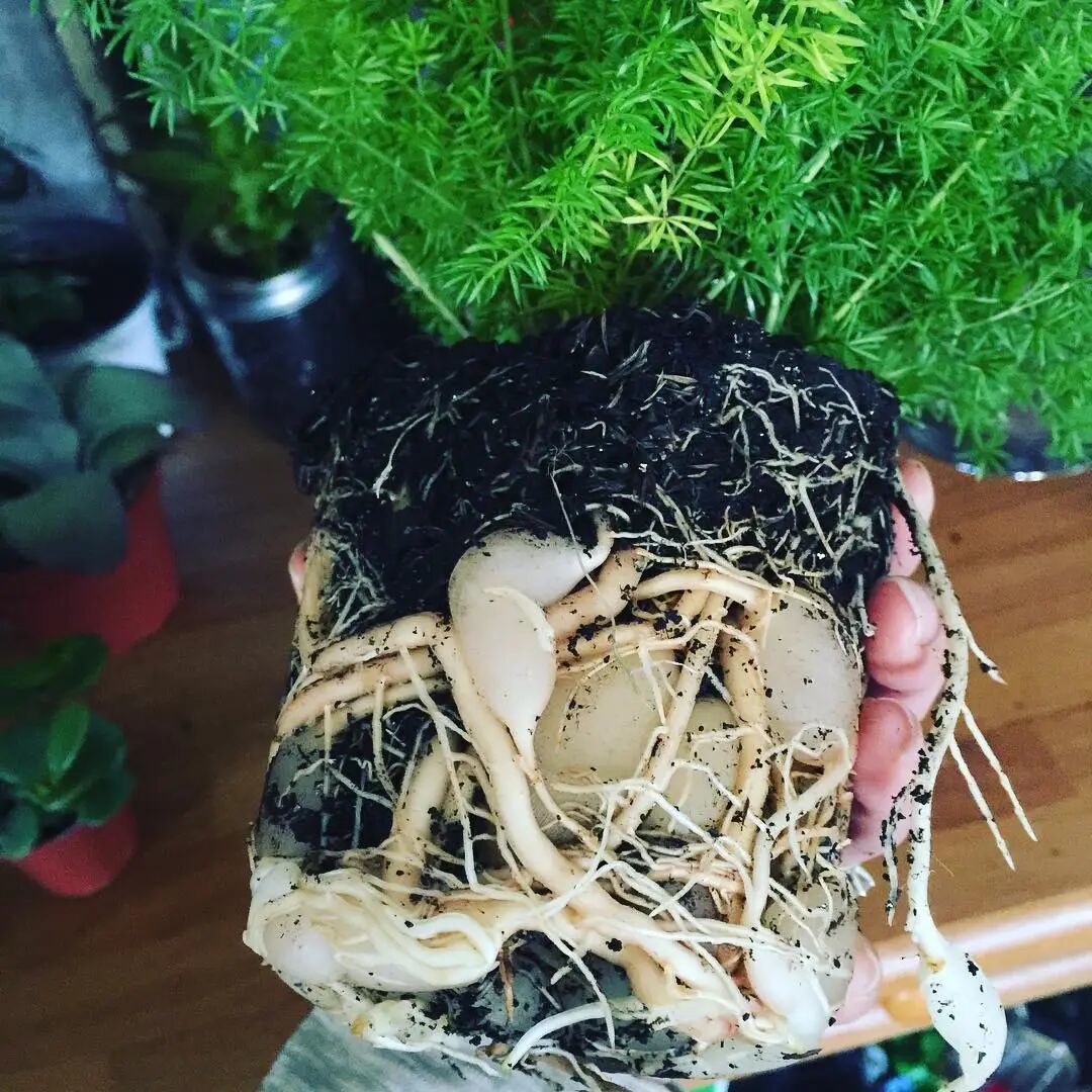 最近有花友问,为什么家里的盆栽狐尾天门冬根系长得特别好,甚至底部的块根长得特别多,像一个个小土豆一般,但是叶子长得特别稀疏,甚至叶子还在不断干枯,是什么情况呢?