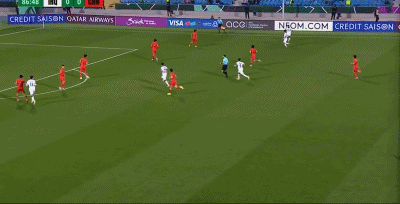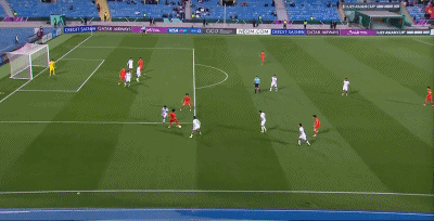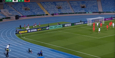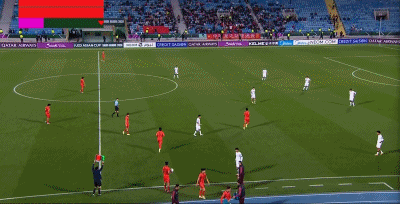第74分钟,U23国足前场打出配合,王钰栋传中被挡出