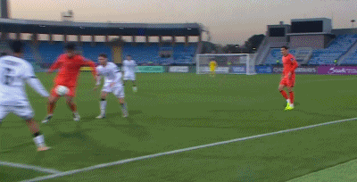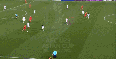 第25分钟,U23国足前场抢断后传球被解围;之后杨希禁区内射门打高