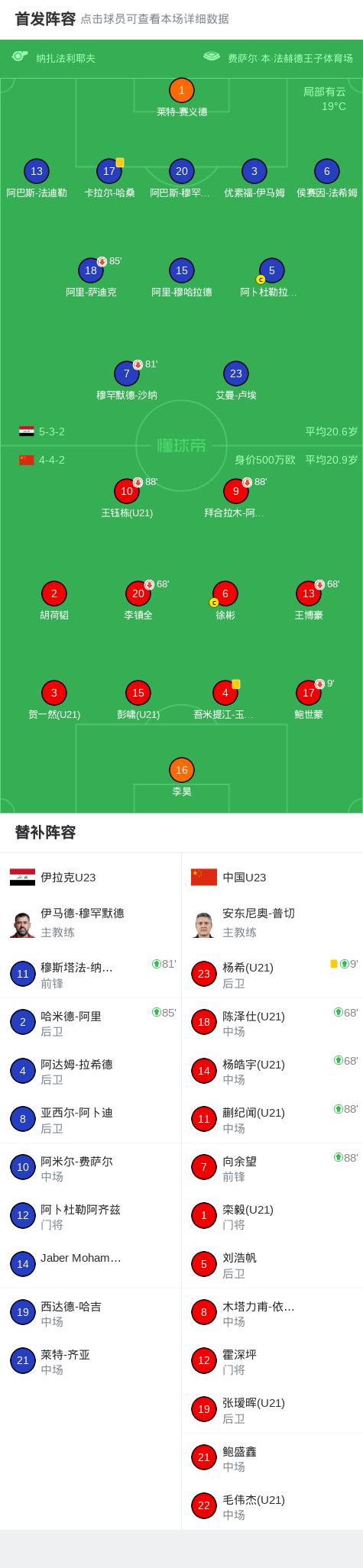 北京时间1月8日U23亚洲杯 小组赛 第1轮,伊拉克U23对阵中国U23。最终比分伊拉克U23 0-0 中国U23。