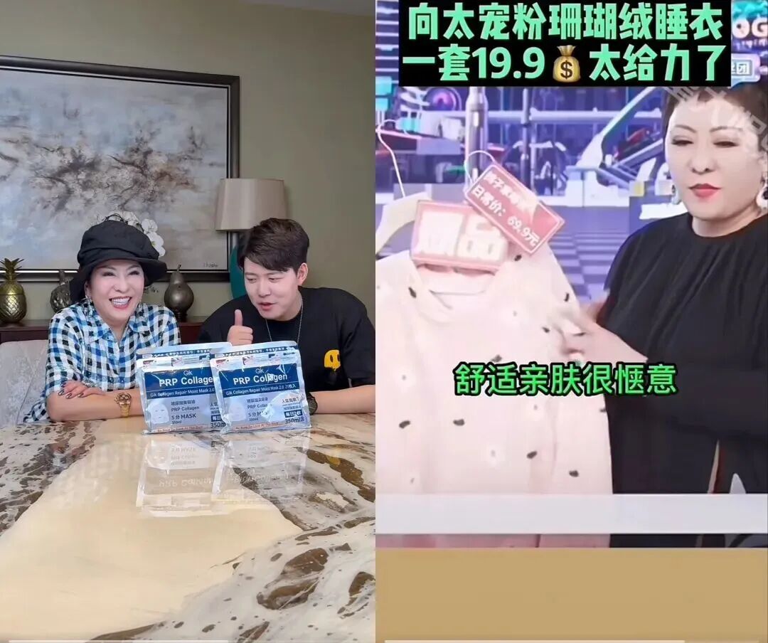 早在2022年,向太就在抖音高调开播。9.9元的面膜、19.9元的珊瑚绒睡衣,被网友们戏称为“豪门体验生活的直播”。