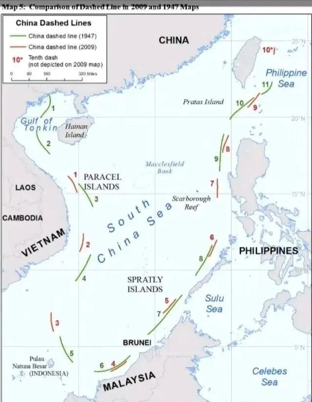 1949年,无力再战的荷兰承认印尼独立,荷兰在东南亚的势力范围基本被印尼接手,其中就包括纳土纳群岛。同年新中国成立,延续了对南海“十一段线”内权益的主张,只是1953年时去除了位于北部湾的两段,将其变成了如今的“九段线”,但九段线依然不包括纳土纳群岛。