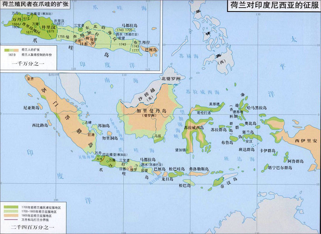 到18世纪初,荷兰以爪哇岛为核心向周边岛屿扩张,为全面控制印尼群岛奠定了基础。