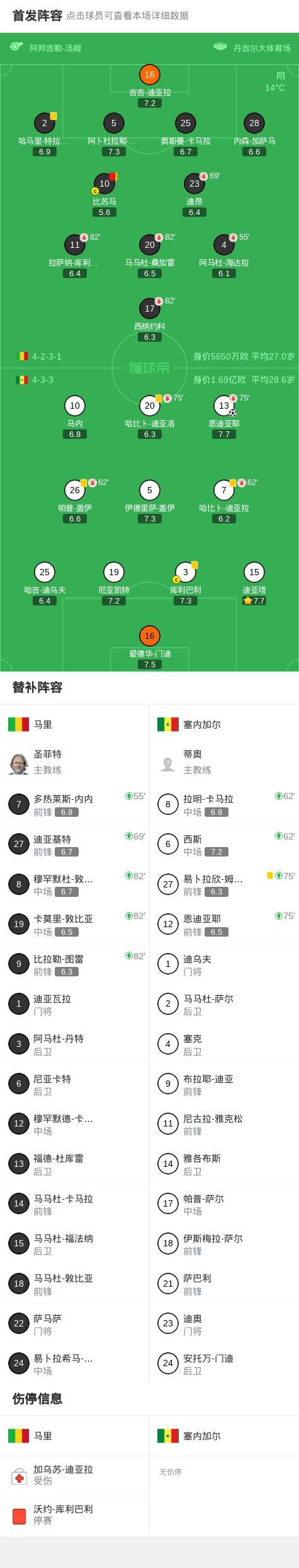 第61分钟,卡马拉头球攻门,皮球被门迪飞身扑出