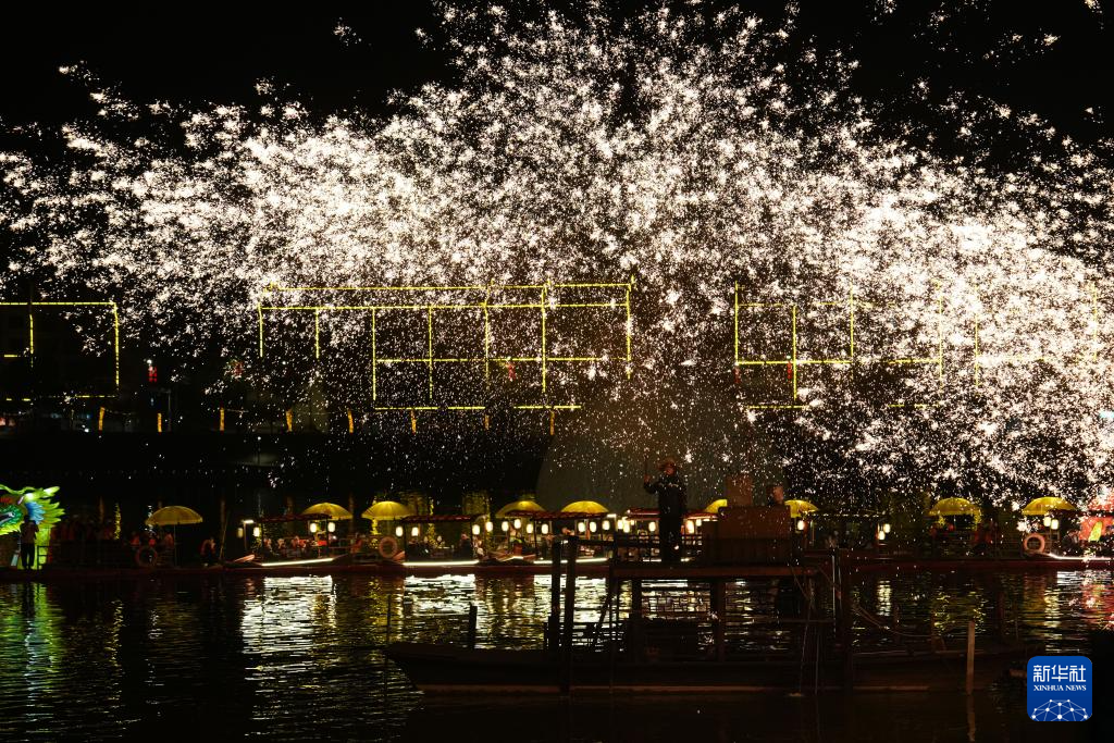 这是1月9日在南岳里拍摄的打铁花表演。