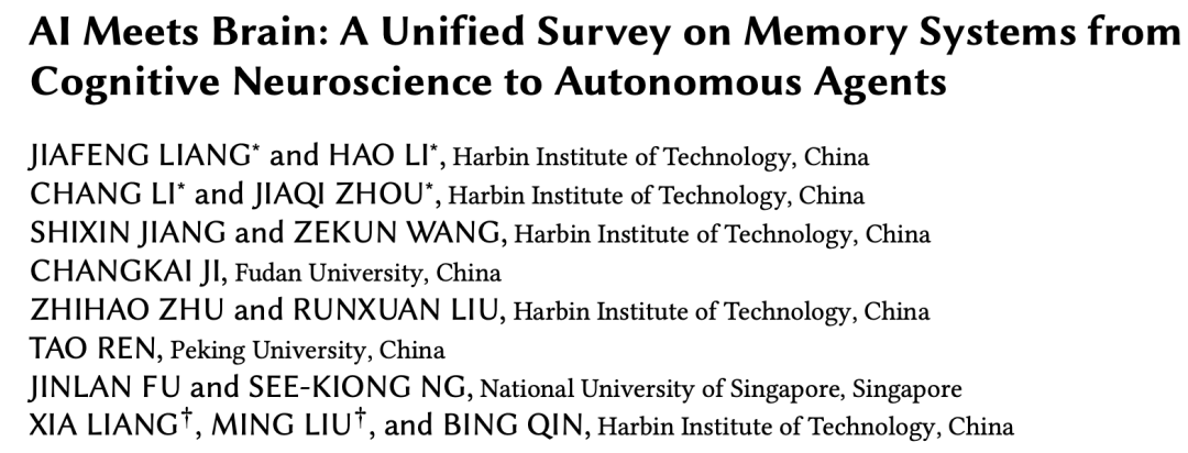 哈工大、鹏城实验室、新加坡国立、复旦、北大联合发布了一篇重磅综述《AI Meets Brain: A Unified Survey on Memory System from Cognitive Neuroscience to Autonomous Agents》,首次打破认知神经科学与人工智能之间的学科壁垒,系统性地将人脑记忆机制与 Agents 记忆统一审视,为设计真正「类人」的 Agent 记忆系统奠定理论基石。