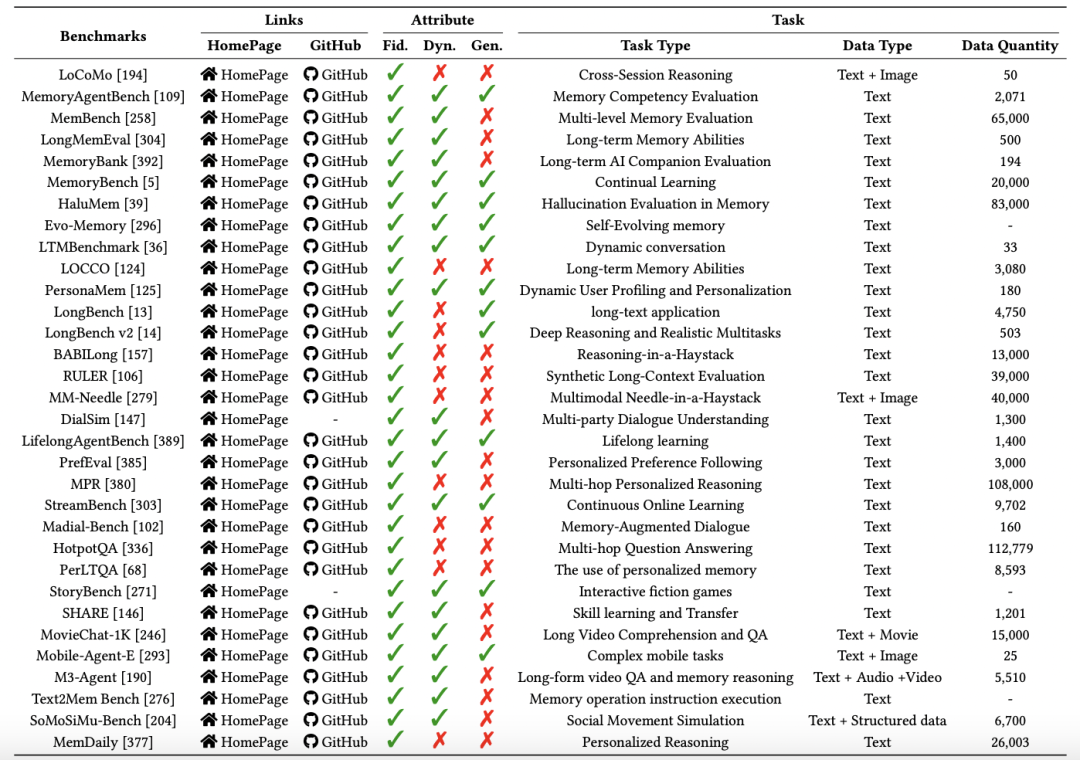 面向情景(Episodic-oriented):旨在评估复杂下游应用场景(使用外部工具完成任务)中 Agent 上记忆系统的实际性能增益。