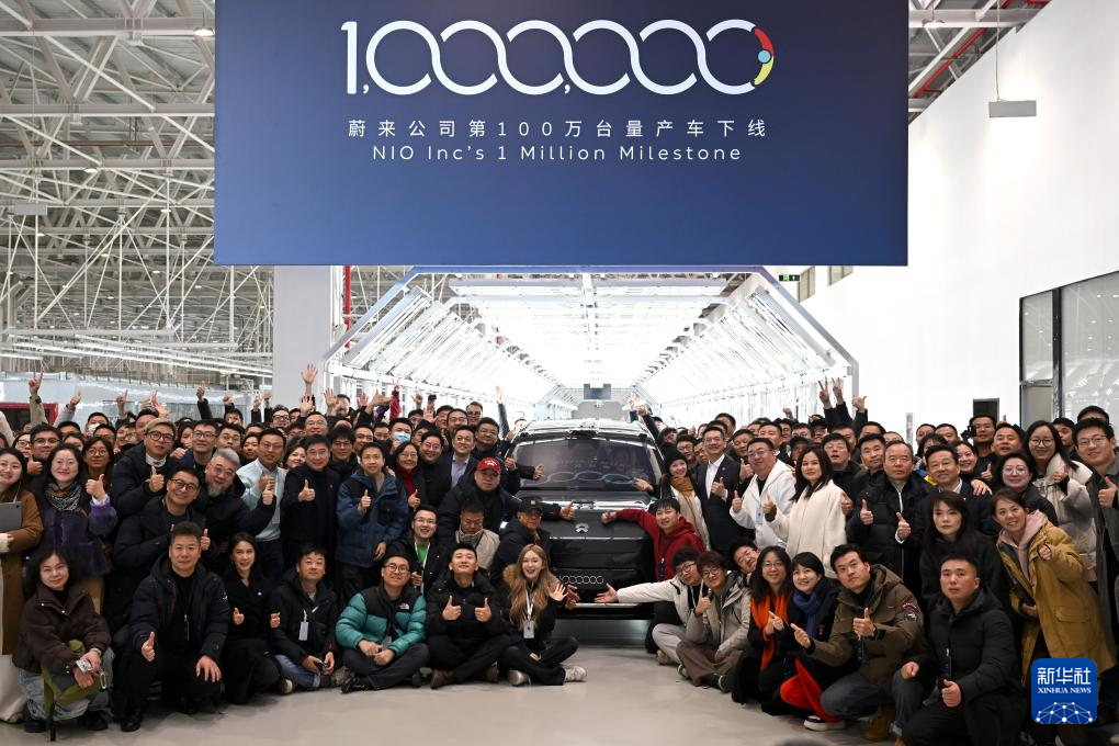 1月6日,在安徽省合肥市新桥智能电动汽车产业园蔚来第二工厂,蔚来第100万台量产车下线。