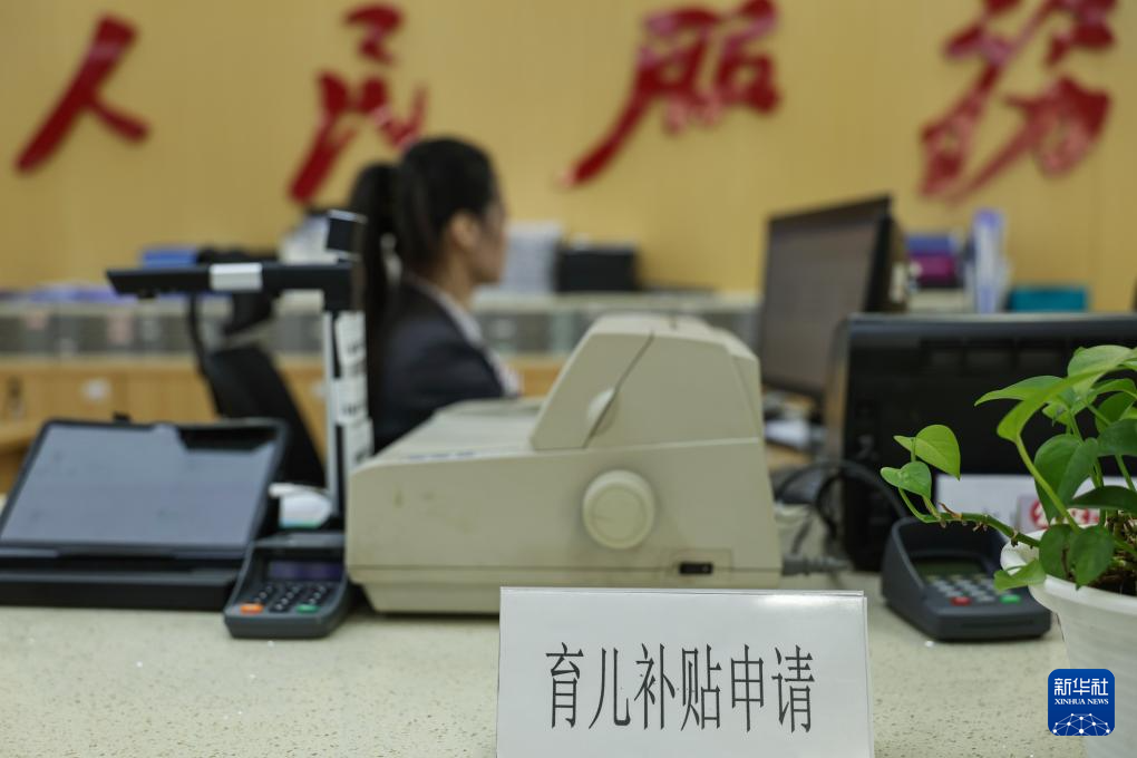 北京市西城区月坛街道政务服务中心的育儿补贴申请柜台准备就绪(1月5日摄)。