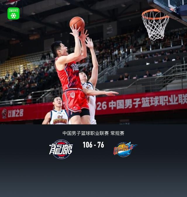 第四节广州埃里克-托马斯拿下6分,四川杜智博拿下7分,最终广州106-76战胜四川