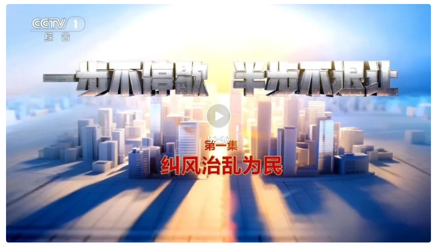 由中央纪委国家监委宣传部与中央广播电视总台央视联合摄制的电视专题片《一步不停歇 半步不退让》,1月11日在总台央视综合频道晚8点档播出第一集《纠风治乱为民》,央视新闻新媒体平台同步播发。