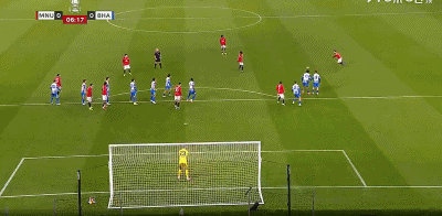 第42分钟,B费任意球贴地斩,皮球偏出球门